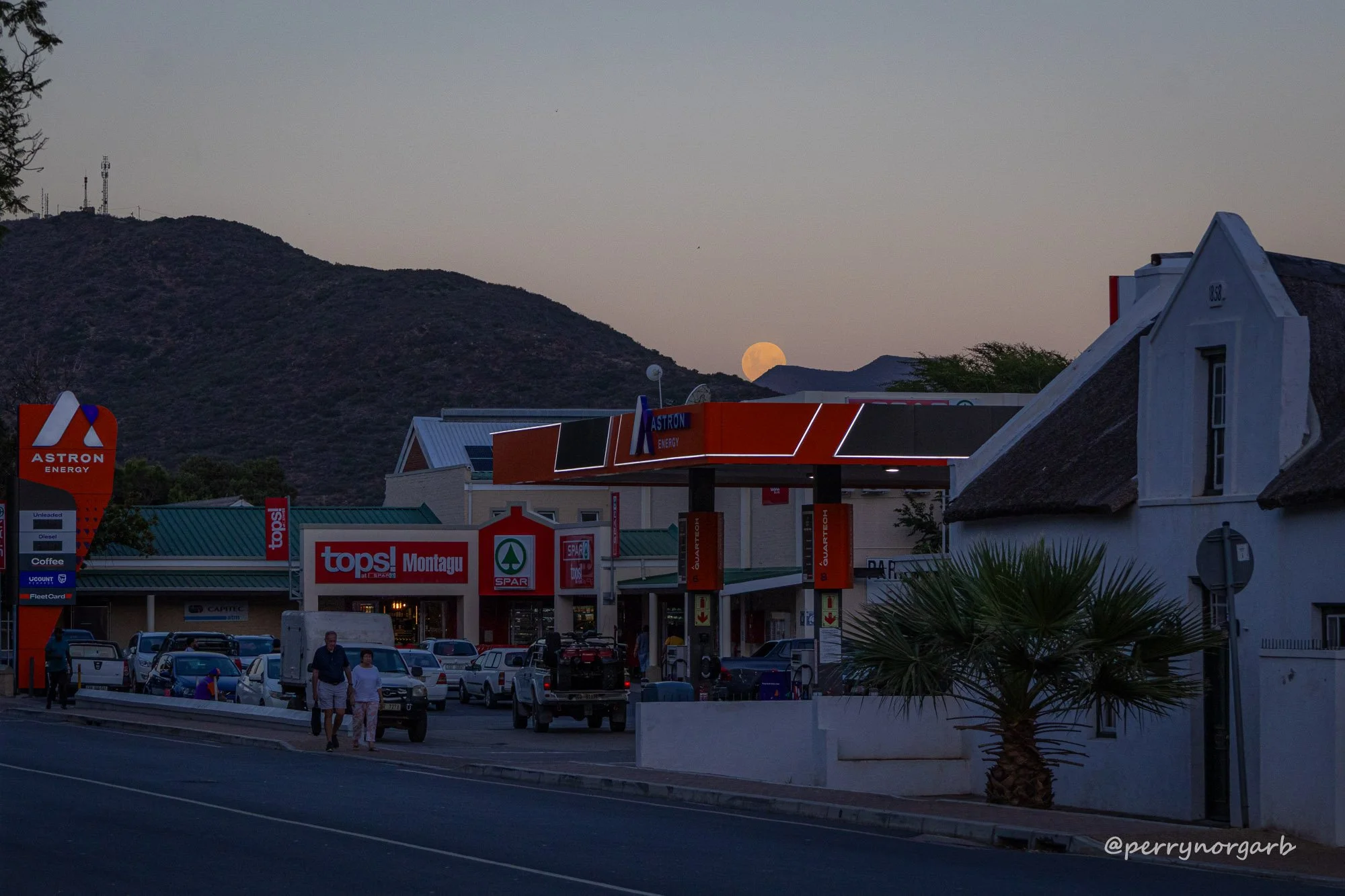 As I didn’t use my compass app, I had only the vaguest clue where to expect the moon to rise. I was wishfully thinking it might line up with the main road through Montagu, the R62. Of course I was proved horribly wrong.