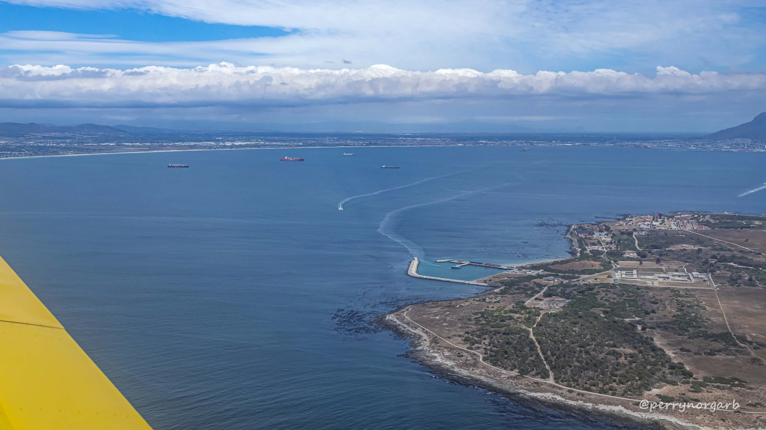 We headed straight out to skirt Robben Island; it’s a no-fly zone directly above it.