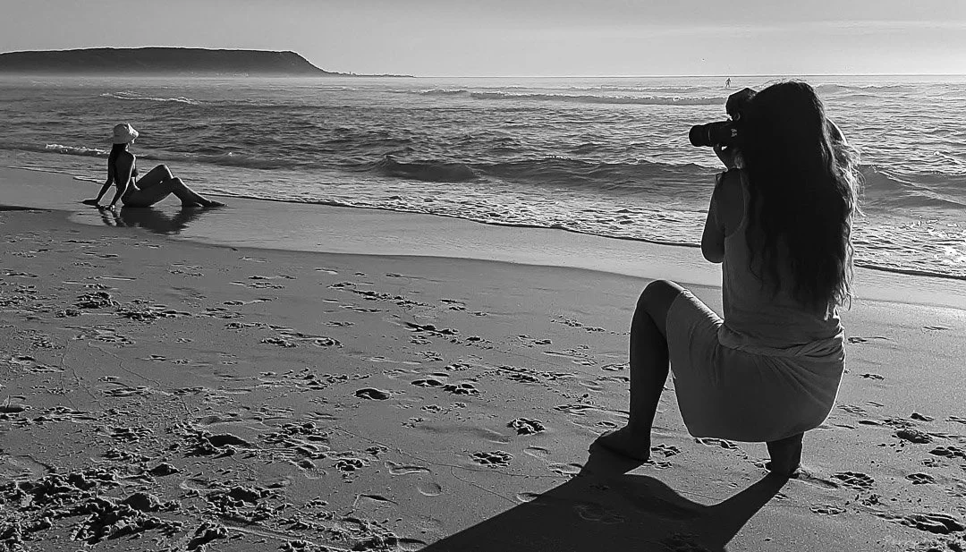 Or even a painterly photo of an artist painting the scenery and surfers at Long Beach, with Hout Bay and the back of Table Mountain in the far distance, left of centre. This is Beth Lowe, a well-known plein-air artist, based in Kommetjie, Cape Town.